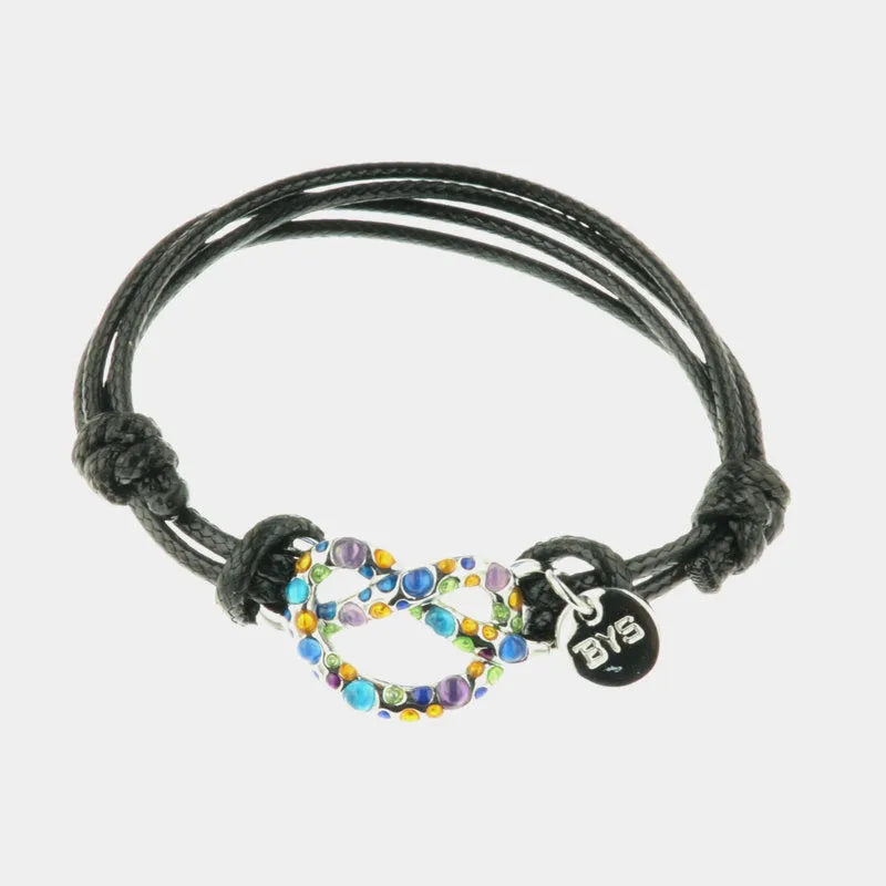 Bracciale in Metallo in caucciu, con simbolo infinito impreziosito da cristalli multicolore