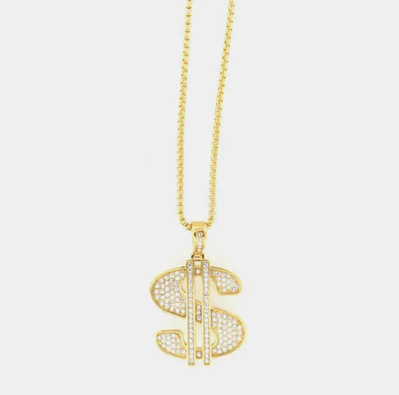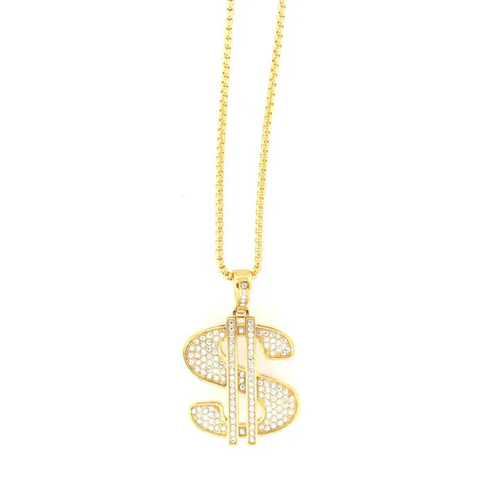 Collana in Acciaio con pendente simbolo del dollaro americano impreziosito da cristalli