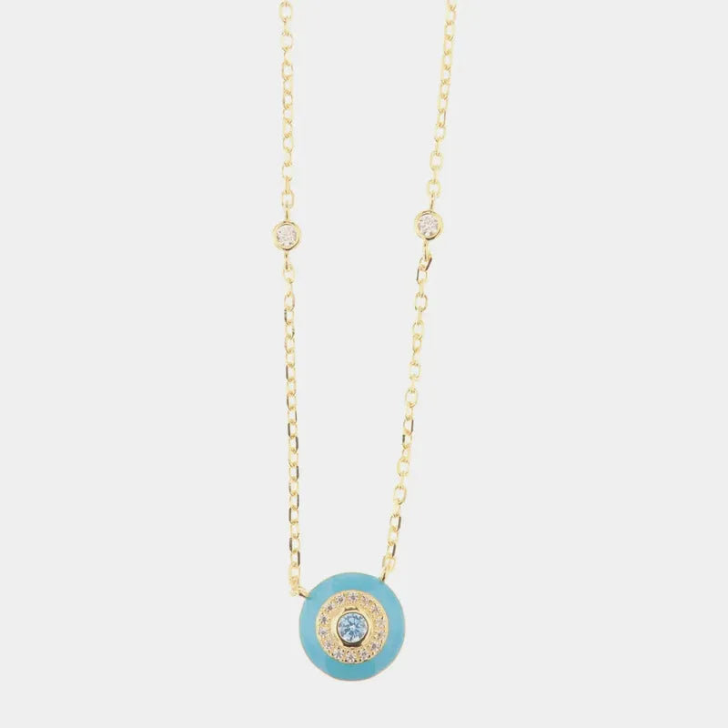 Collana in Argento 925 a forma di cerchio smaltato azzurro con dettagli in zirconi bianchi e blu