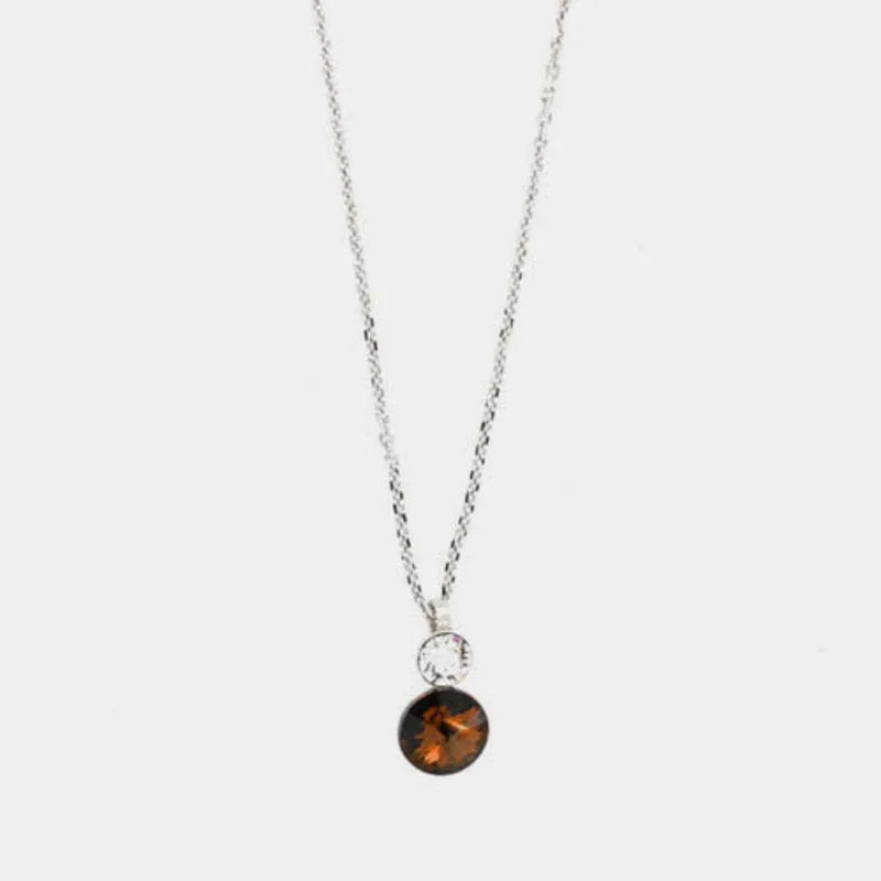 Collana in Argento 925 con doppio punto luce di cristalli bicolore pendenti.