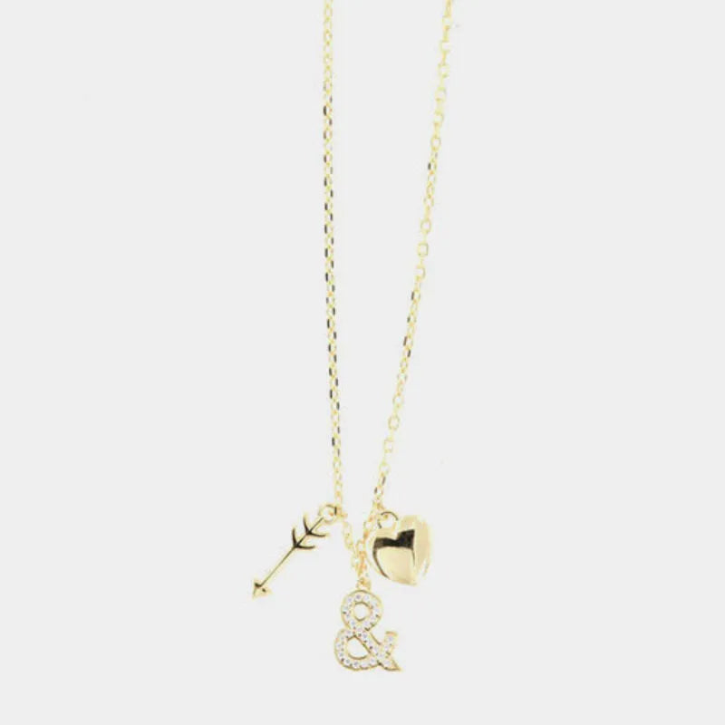 Collana in Argento 925 con pendenti a forma di cuore, freccia e lettera con zirconi bianchi