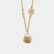 Collana in Metallo con borsetta impreziosita da fiori colorati