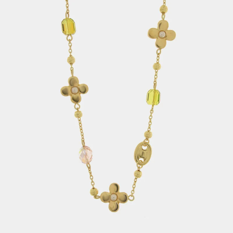 Collana in Metallo fiori con cristalli