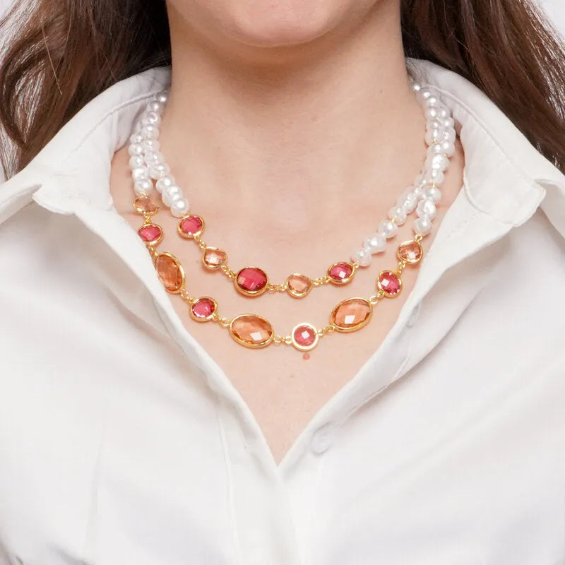 Collana in Metallo multifilo con cristalli rosa - BYSIMON gioielli