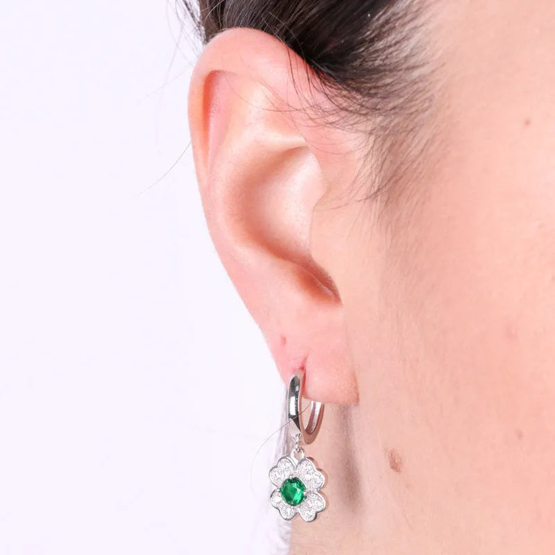 Orecchini in Argento 925 a forma di fiore con zirconi trasparenti e verdi