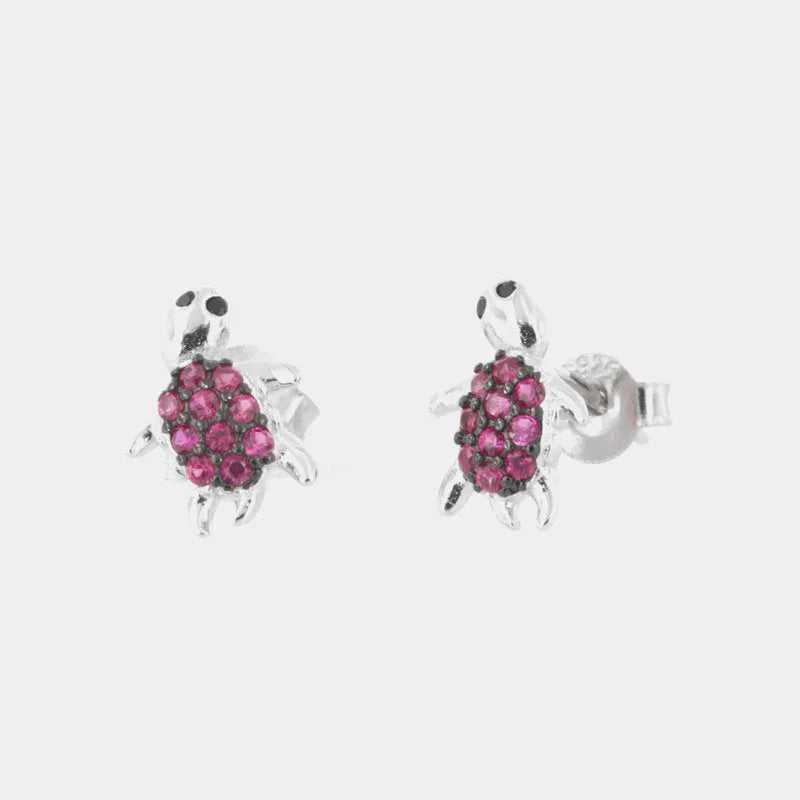 Orecchini in Argento 925 a forma di tartarughe con zirconi rossi su base brunita