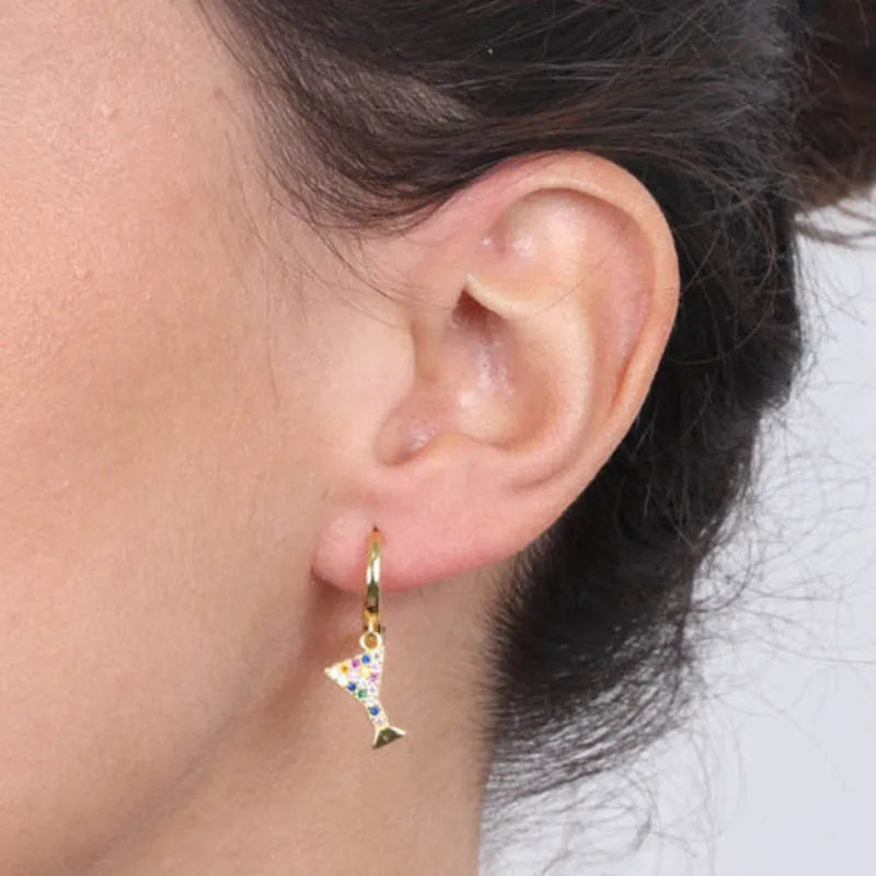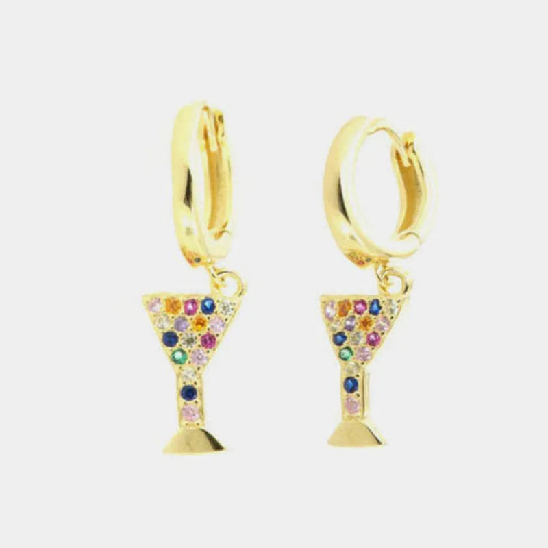 Orecchini in Argento 925 cerchietti con calici pendenti tappezzati di zirconi multicolor