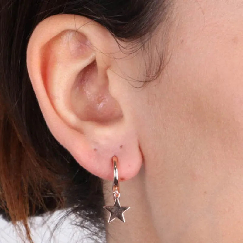 Orecchini in Argento 925 cerchietto con stella liscia pendente