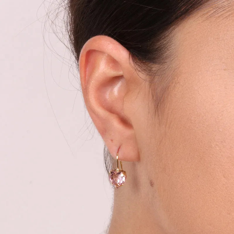 Orecchini in Argento 925 monachina con punto luce viola a forma di cuore