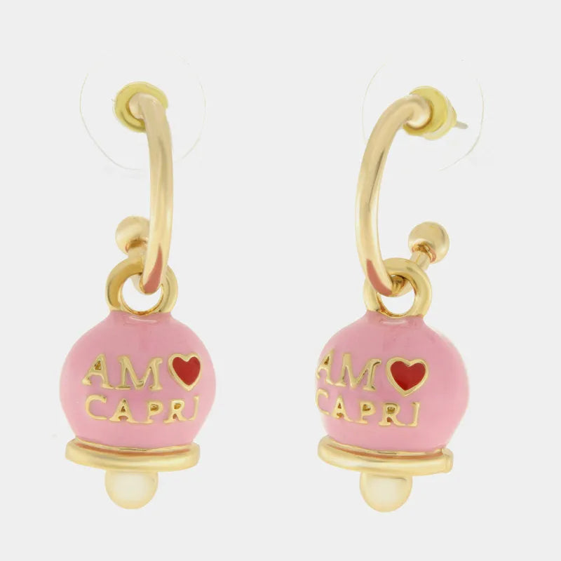 Orecchini in Metallo con campanella rosa e scritta Capri