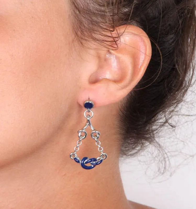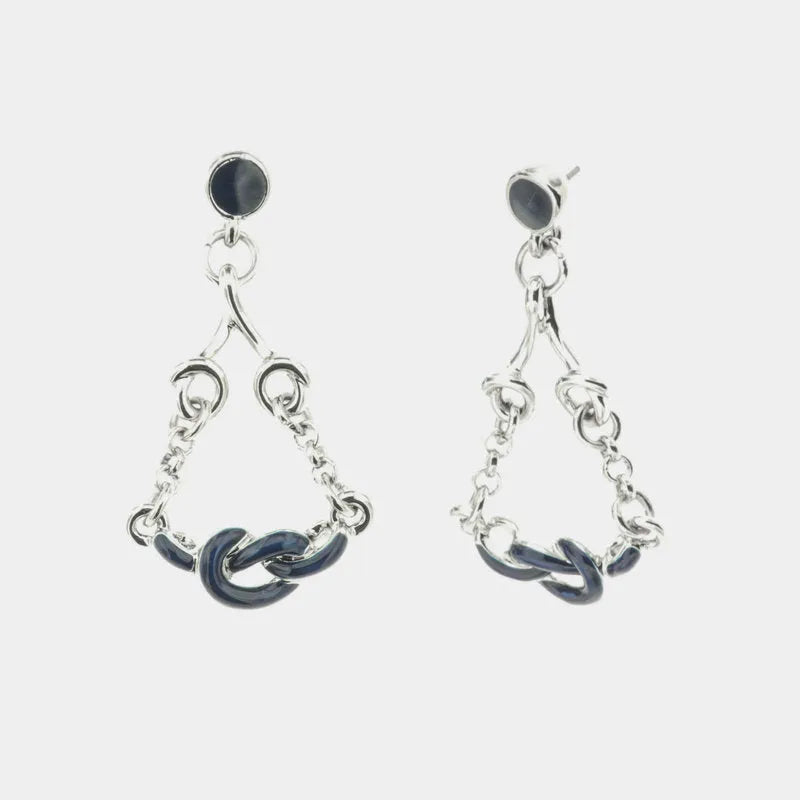 Orecchini in Metallo con nodi pendenti impreziositi da smalto blu